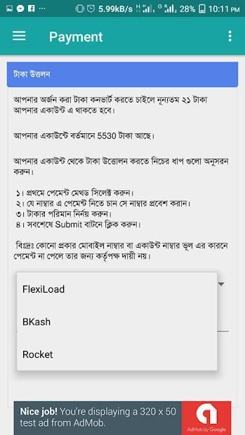 Mobile Cash BD একটি অনলাইন আর্নিং app। এই app দিয়ে আপনি কিছু পরিমান আয় করতে পারবেন, যা দিয়ে আপনি আপনার Internet খরচ ও Wifi বিল তুলতে পারবেন।