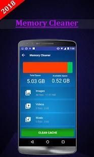 Memory Cleaner: Menampilkan tersedia ruang untuk gambar, audio, video dll dan Optimalkan untuk membersihkan cache dan kosong folder.