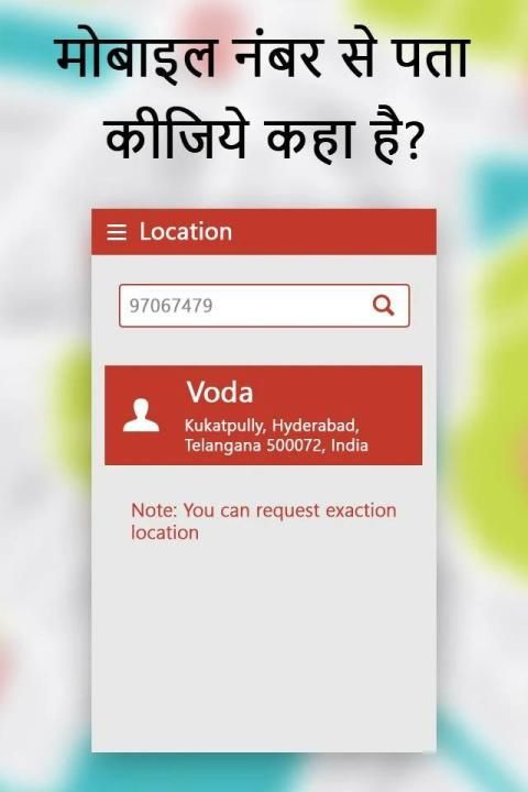 Phone number Tracker: Our application helps you to track any phone number from India. You can search for any mobile number to find the contact name and the location. The city area, state, country and service operator of the phone number will be displayed and the geographic location will be shown on the maps.