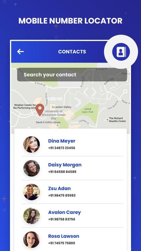 Aplikasi Pelacak nomor telepon membantu Anda melacak nomor telepon apa pun dari India. Anda dapat mencari nomor ponsel apa saja untuk menemukan nama kontak dan lokasi. Area kota, negara bagian, negara dan operator layanan dari nomor telepon akan ditampilkan dan lokasi geografis akan ditampilkan pada peta.