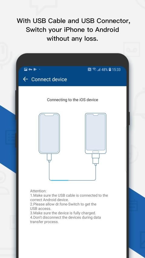 ► Import iPhone contents to your Android Phone by wire. (iOS device cable and USB connector are necessary)