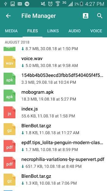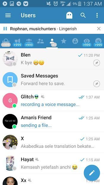 Pratinjau obrolan tentang avatar klik panjang