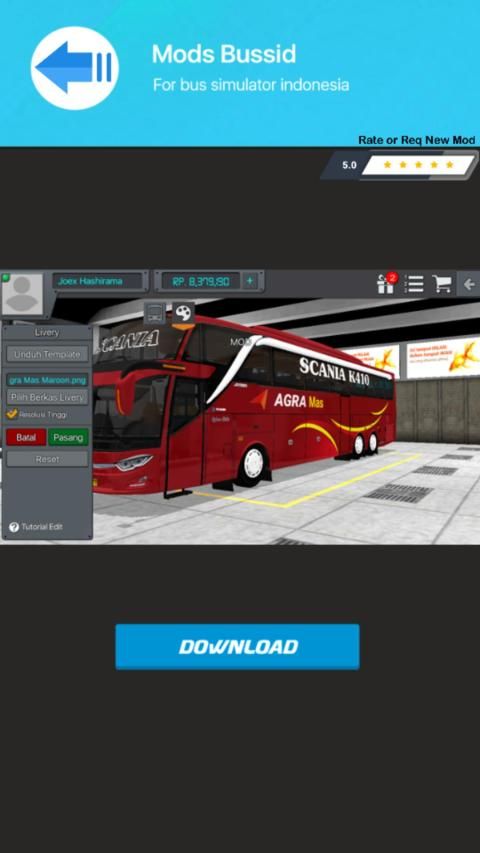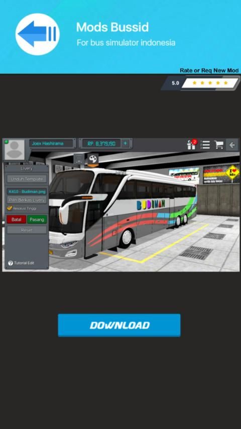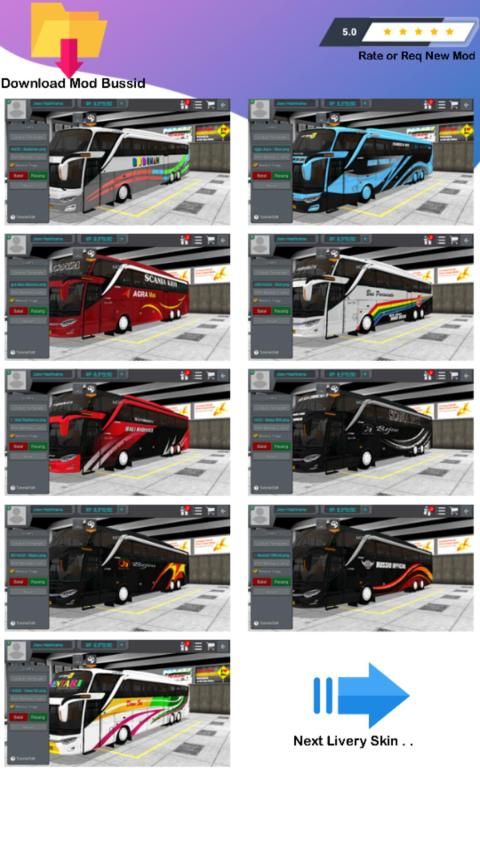 Livery adalah suatu bagian tak terpisahkan pada game mod bussid bus simulator indonesia. Semakin bagus tampilan skin livery yang Anda gunakan, akan semakin keren juga bus yang Anda miliki. Aplikasi download mod bussid v3 0 merupakan suatu bentuk apresiasi kami, terhadap kecintaan kami kepada produk bus mod bussid lengkap dalam negeri ini. Di dalam aplikasi download mod kendaraan bussid ini terdapat berbgai macam Aneka template skin mod bussid bus mudik lebaran dan tahun baru lengkap dengan berbagai macam bentuk pilihan bus, yang bisa Anda peroleh secara gratis dan sudah support klakson Om Telolet Om dalam game simulasi.