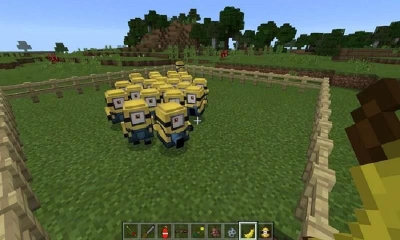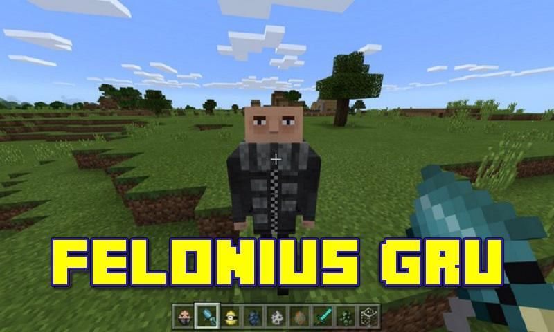 addon ini menambahkan pelayan (orang jahat termasuk) dan Gru untuk Minecraft PE. Para pelayan sangat lucu dan dapat digunakan untuk beberapa hal. Sebagai contoh, Anda bisa menjinakkan mereka, memiliki mereka berjuang untuk Anda atau Anda dapat mengirim mereka pergi pada misi seperti berburu atau memancing.