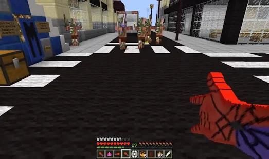 The Spider-Man Mod menambahkan satu set baru item untuk permainan yang dapat dibuat dan digunakan untuk menjadi Spider-Man. Tidak hanya akan Anda melihat seperti dia tetapi Anda juga akan memiliki semua kekuatannya seperti menembak sarang laba-laba dan melompat tinggi di langit.