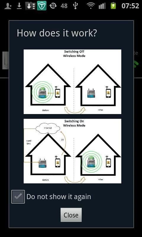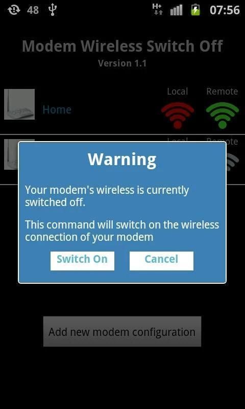 Dengan aplikasi ini sederhana, Anda dapat mengaktifkan atau menonaktifkan komunikasi nirkabel modem Anda.