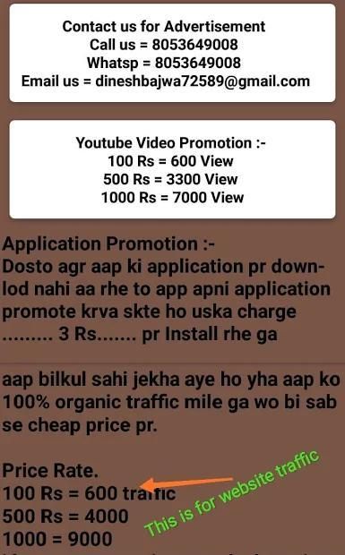 We offer you a special feature in our app. You can do advertise with us of your website, youtube channel & any other your business. For that just you have to contact with us and we will place your ad in our app.
