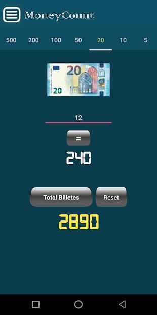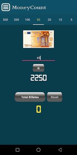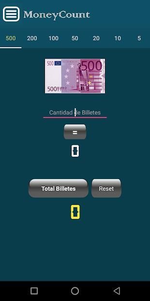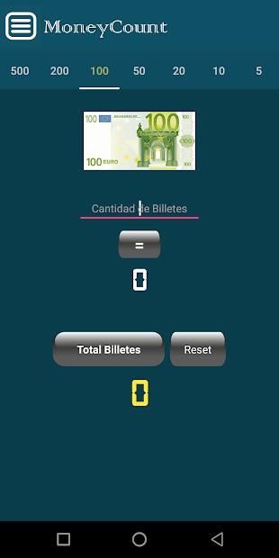 Solamente basta con indicar cuántos billetes hay de cada uno y la aplicación calcula el total de dinero.