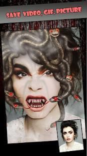 → Choose picture from gallery or Take a selfie picture with your phone’s camera and change yourself into a scary monster & Halloween!