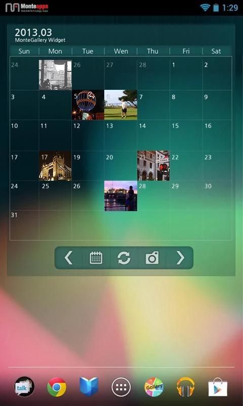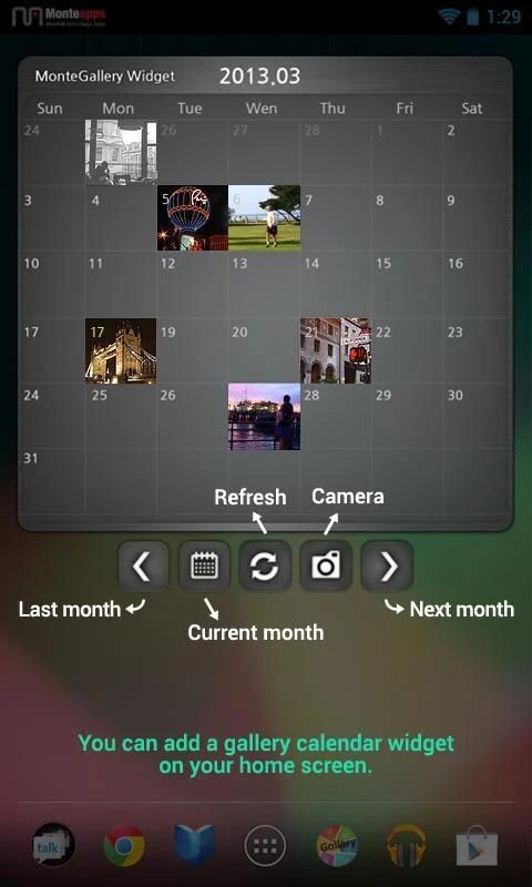Anda dapat menambahkan Monte Galeri kalender widget di layar rumah Anda.