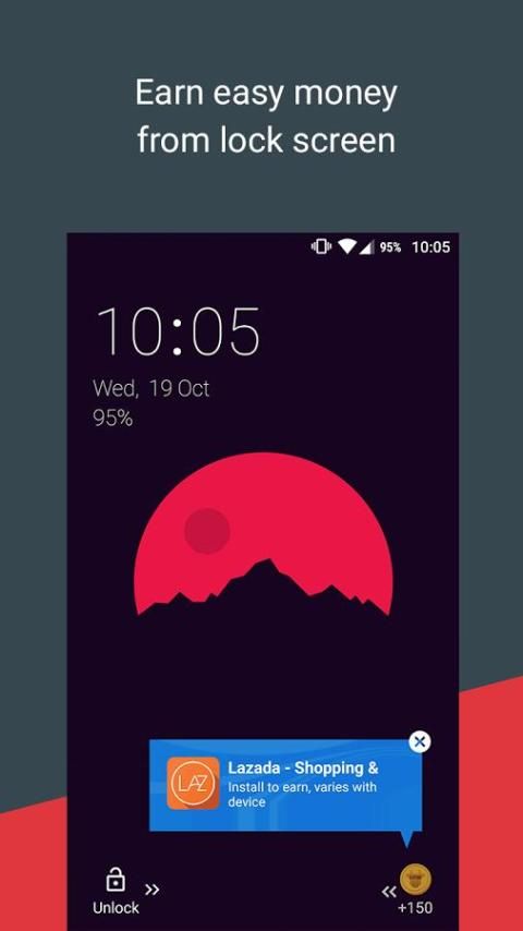 4) Geser ke kiri untuk mendapatkan dengan memeriksa penawaran atau gesek ke kanan untuk membuka kunci ponsel biasanya