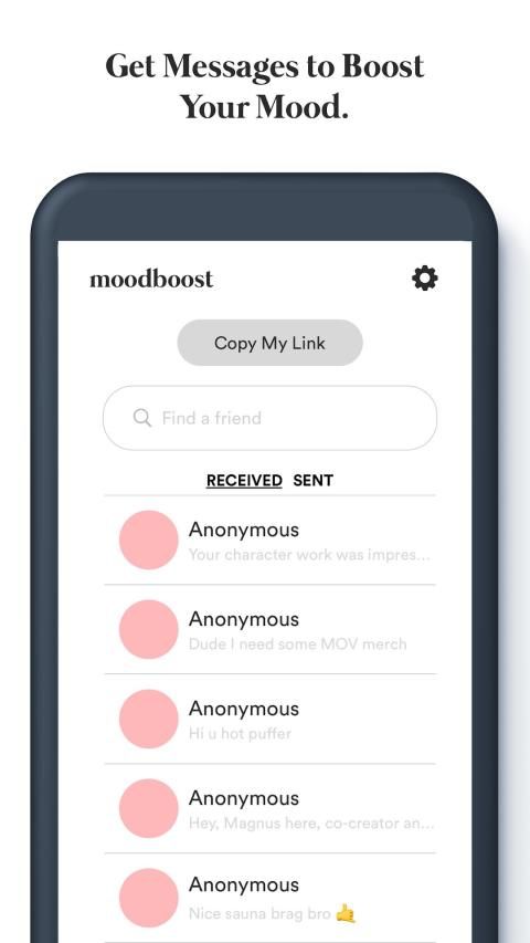 Moodboost - Anonymous Compliments is an app for receiving uplifting messages from your friends. Just post your personalized link in your instagram bio or snap story, and watch the good vibes roll in!