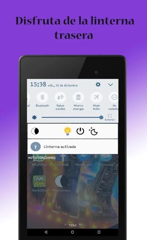 Anda dapat mengontrol lampu senter bahkan jika perangkat memiliki headlamp. di fungsi-fungsi ini pilihan untuk mengontrol cepat dan mudah dari pemberitahuan sehingga Anda dapat memiliki kontrol yang maksimum setiap saat berlaku, Anda bahkan dapat menggunakan fungsi saat layar terkunci.
