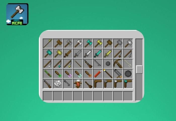Lengkap mods Minecraft PE membuatnya mudah untuk mengubah tampilan dan nuansa dari dunia game.The Anda mods Minecraft tidak pernah senjata richer.The terdiri dari sabit, katanas dan melawan sumbu. Setiap senjata baru diperoleh kemampuan unik mereka sendiri khusus serta weaknesses.This toold dan memanggul senjata mod mcpe dilengkapi dengan antarmuka pengguna kustom untuk setiap senjata dan sistem senjata canggih termasuk hal-hal seperti ammunations dan kerajinan resep unik untuk setiap senjata.