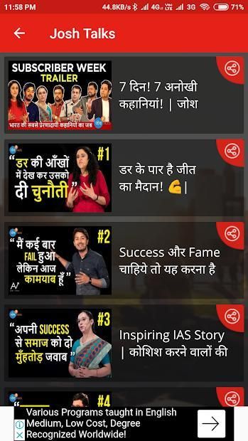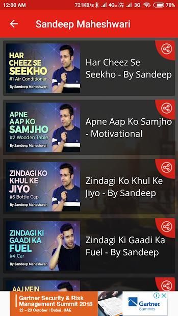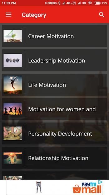 Motivation King Hindi app contains different types of motivational video categories in Hindi which are as follow