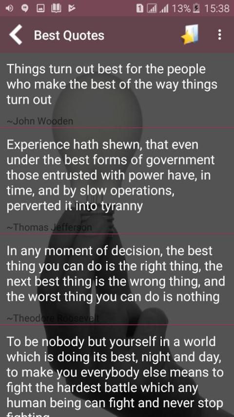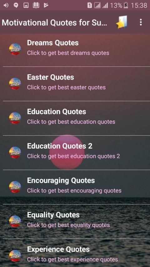 Apa yang menginspirasi Anda? Kutipan inspiratif dalam aplikasi ini akan mencerahkan hari Anda dan menginspirasi Anda dalam perjalanan Anda meskipun hidup!