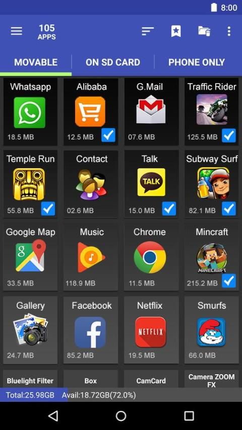 Memindahkan foto Untuk SD CARD memungkinkan Anda untuk memindahkan aplikasi dari memori telepon ke kartu SD.