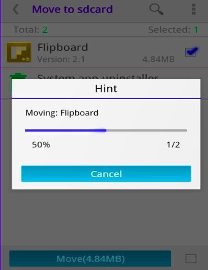 Pada satu titik, memori telepon atau kartu SD tidak penuh ruang untuk bergerak informasi pada kartu telepon SD untuk menggunakan aplikasi ini.