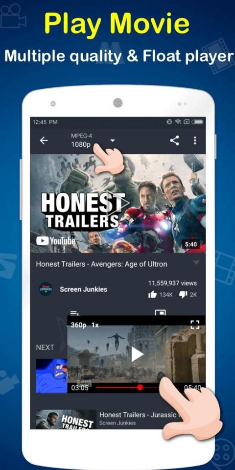 Movie Tube membuat Anda Cari, Tonton, Tambahkan ke Daftar Putar film dan Tonton di pemutar video mengambang. Anda dapat mencoba beberapa kualitas video film.