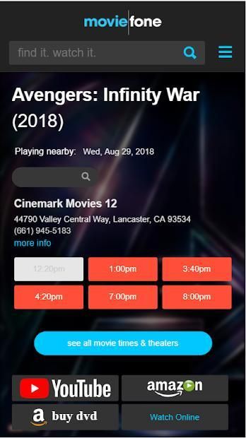 Buy movie tickets, search showtimes, browse movies in theaters, and find movie theaters near you on Moviefone.