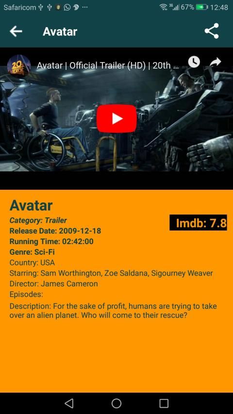 -Share interesting movies with friends via any messaging app, using the share button