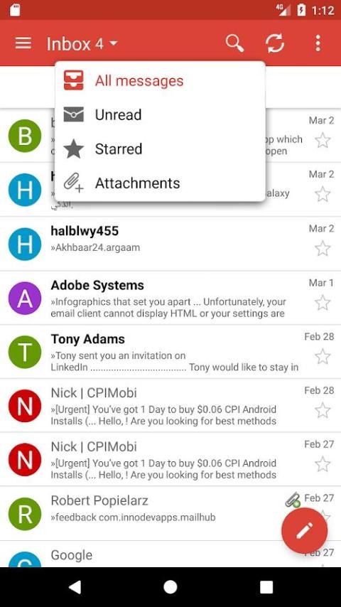- Bersatu inbox untuk membaca semua email di layar yang sama