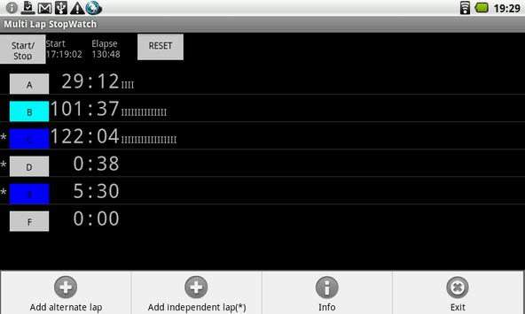 There are 2 kinds of stopwatches, one can be started or stopped independently, and the other is automatically stopped when another member starts.