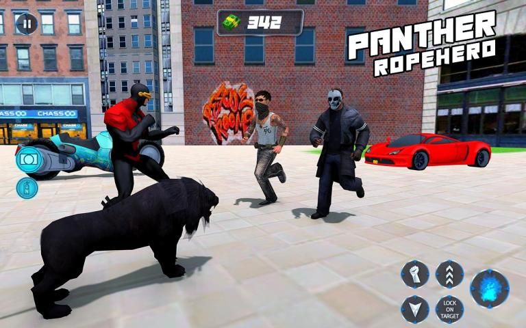 + Panther hero stealth & amazing rope swing hero city rescue with crime fighting scenes.
