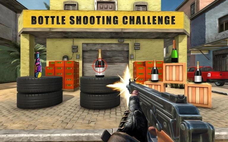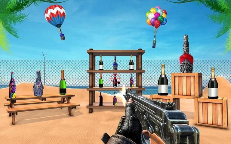 Become real aiming master bottle shooter in this challenging bottle blast fps shooting game.