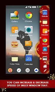 Anda dapat menambahkan aplikasi favorit Anda di Multi Jendela Slide Bar tray. Anda dapat mengakses tray ini setiap saat dapat saat bermain game, menggunakan aplikasi, melalui telepon dll slide bar tray akan overlay semua aplikasi pada ponsel Anda.