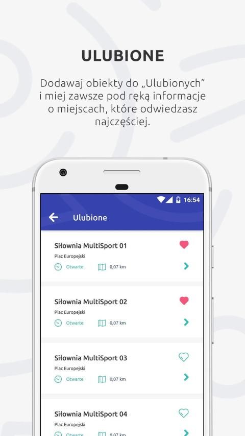 MultiSport - oficjalna wyszukiwarka to aplikacja mobilna, dzięki której znajdziesz idealne miejsce do ćwiczeń lub odpoczynku. Siłownie, baseny, zajęcia fitness, joga, taniec czy aqua aerobik - te i inne ulubione zajęcia znajdziesz w kilka sekund. Oszczędzaj czas, korzystając z wyszukiwarki klubów sportowych, dodawaj obiekty do „ulubionych” i bądź na bieżąco z promocjami dla Użytkowników dzięki sekcji news.