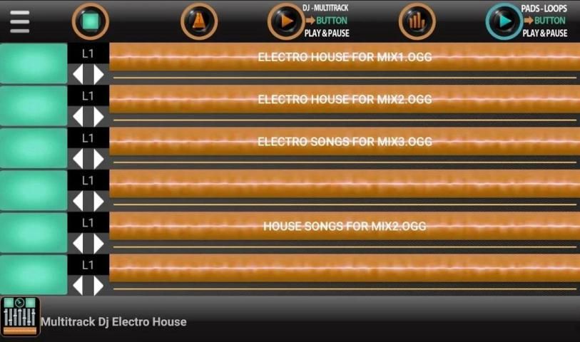 Multitrack Dj Electro House, This application has two main functions loop function where you can mix 6 tracks Loops and each track pad has 10 different sounds of Electro House Music, It has a total of 60 loops where you can make hundreds of combinations.