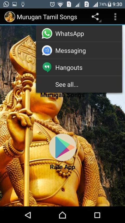 9Apps melayani aplikasi Android gratis. 20,000+ Pengguna mendownload Murugan Tamil Songs versi terbaru di 9Apps secara gratis! Ini adalah aplikasi hebat yang bikin pemain terkagum-kagum. Aplikasi HOT ini di rilis tanggal 2017-04-01. Untuk informasi mobile apps lainnya, Anda dapat mengunjungi situs resmi kami - id.9Apps.com .