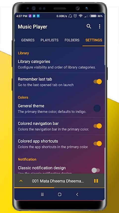 - Tata letak dan tema yang stylish di Musik dan Audio Player.