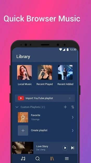 Jelajahi semua file musik lokal dalam hitungan detik dari berbagai sumber lokal: folder kartu SD, aplikasi Galeri, tag ID3. Mainkan semua musik Anda diurutkan berdasarkan daftar putar, artis, album, dan folder. Buat semua musik favorit Anda sebagai daftar putar bersama dengan campuran Anda sendiri.