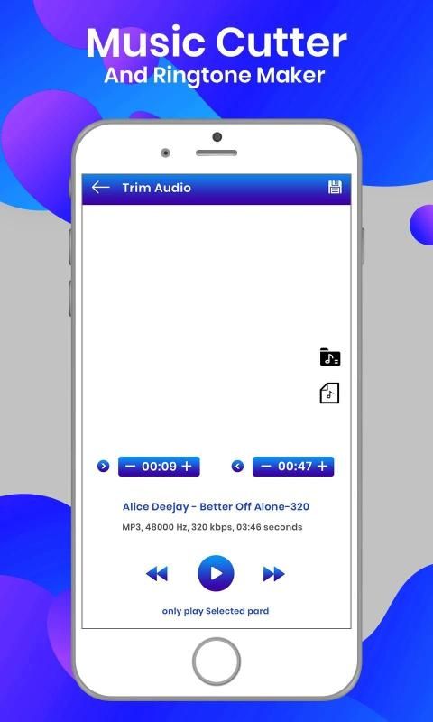 Music Cutter, audio cutter and ringtone maker This application has simple but attractive design, also very easy to use. With only some actions, you can cut the best part of a song you like and set it into your ringtone, alarm sound or notification sounds, ect.