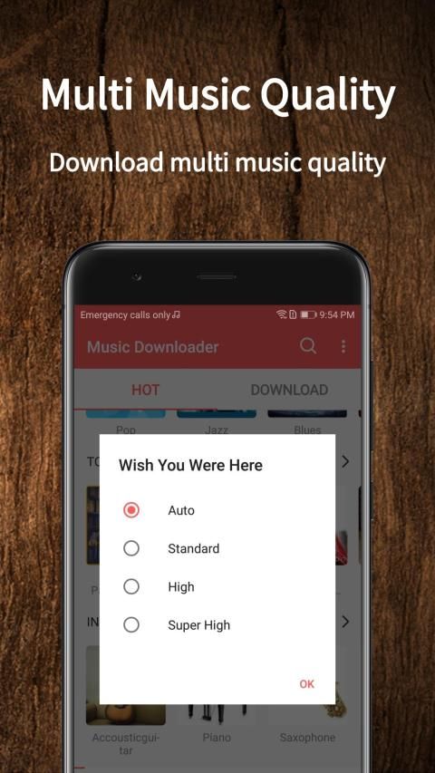 ★ Dukungan memainkan berbagai format musik: kualitas standar, kualitas tinggi, kualitas super tinggi