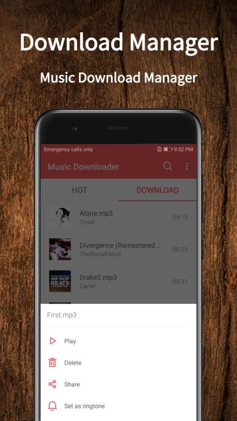 ★ Download manager, easily manage downloaded music, you can play, delete, share, set as ringtone