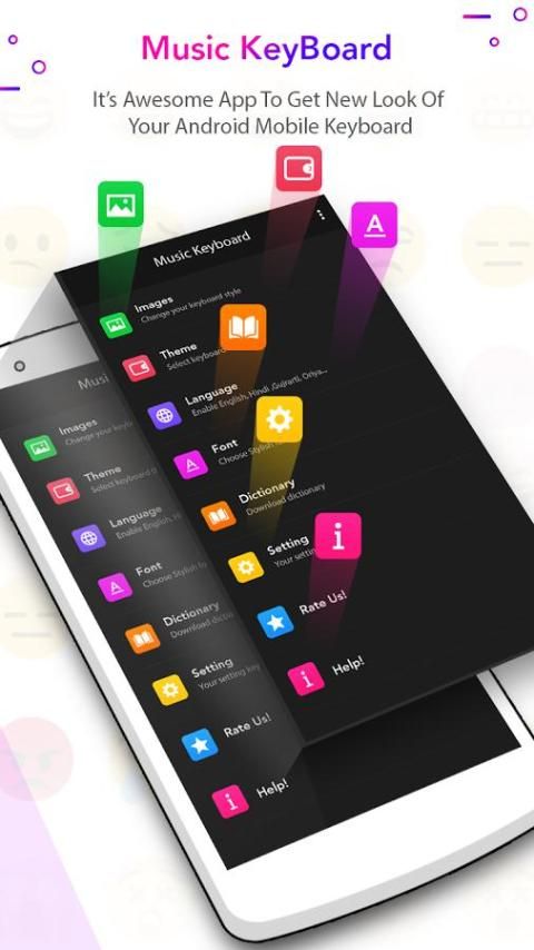 emoticon dan Musik. Ini adalah HARUS-HAVE bebas android stylish Keyboard Musik.