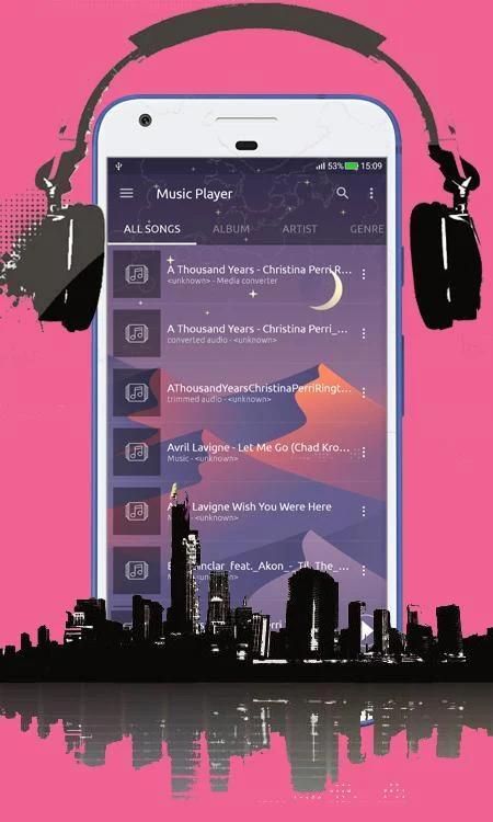 menyesuaikan kulit latar belakang dan tema. free download music player / pemutar audio.
