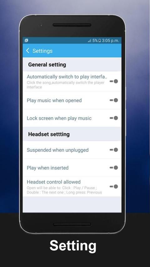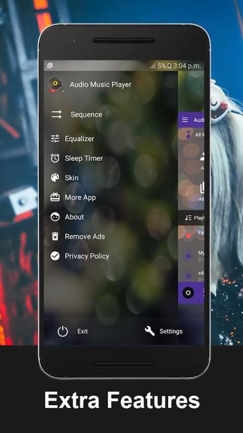 5 band equalizer grafis dengan preset (Normal, Klasik, Tari, datar, Folk, Heavy Metal, Hip hop, Jazz, Pop dan Rock), Bass boost dan Virtualizer, menikmati kualitas tinggi pengalaman bermain musik Anda.