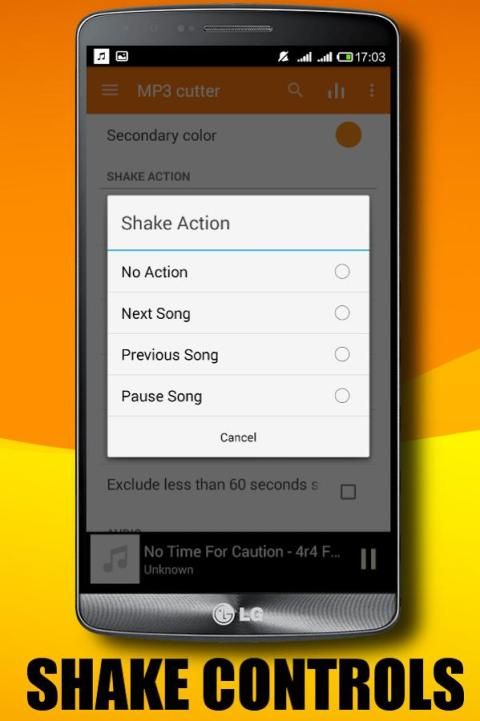 Menyesuaikan tindakan operasi shake, seperti Shake to lagu berikutnya, jeda atau lagu sebelumnya.