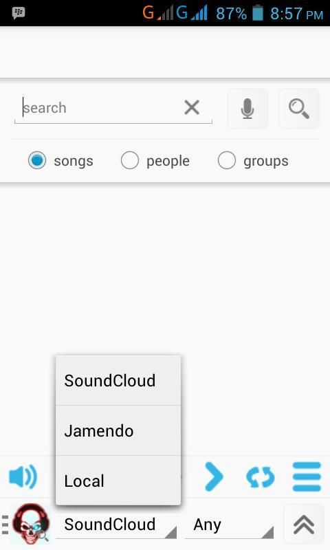 Cari dan mendengarkan mp3 lagu yang sangat mudah dan cepat. Adalah pihak ke-3 API klien compliant yang memungkinkan Anda memutar musik dari telepon, Jamendo & SoundCloud semua dalam satu aplikasi !.
