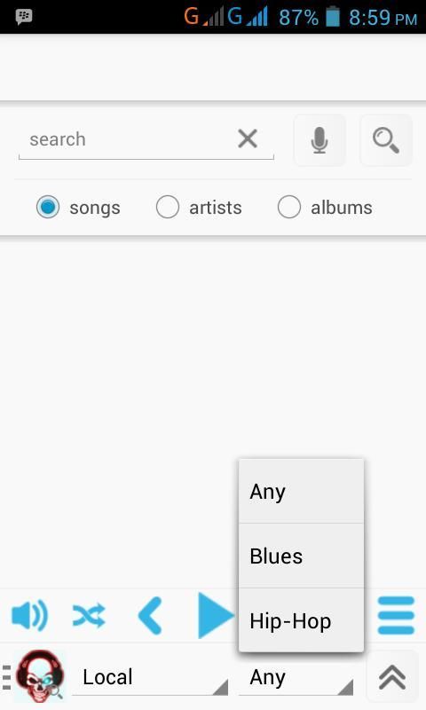 - Untuk trek lokal: lagu, artis, album, genre, filter.