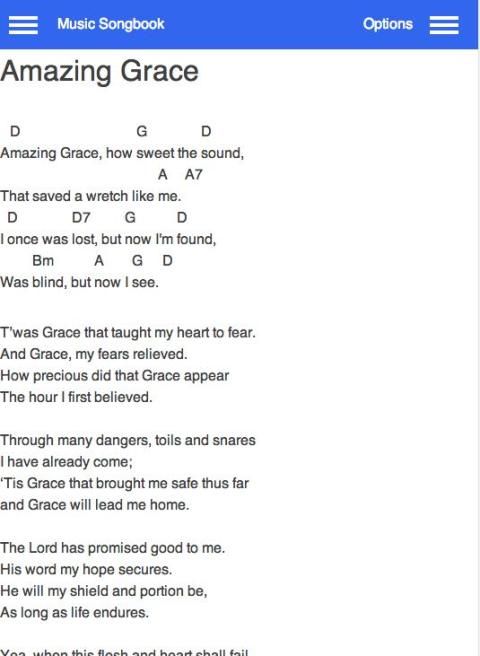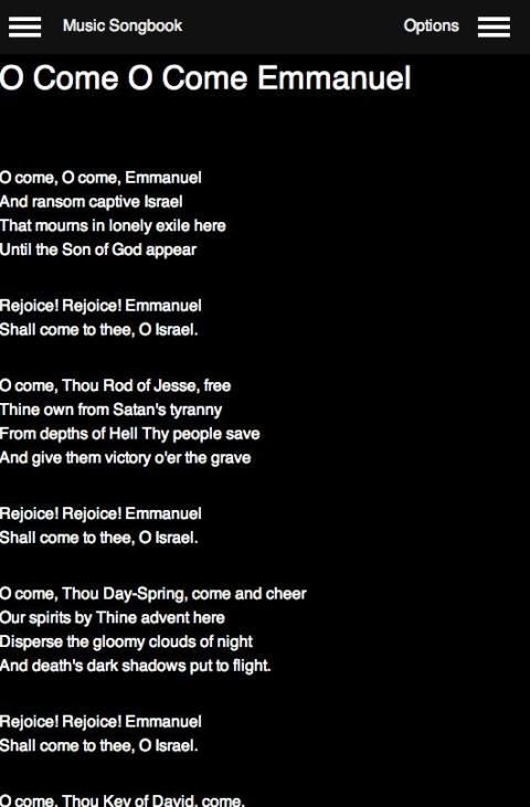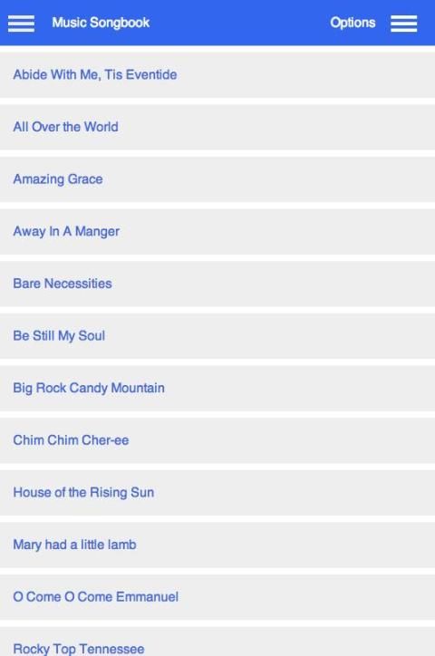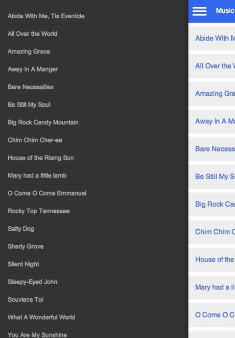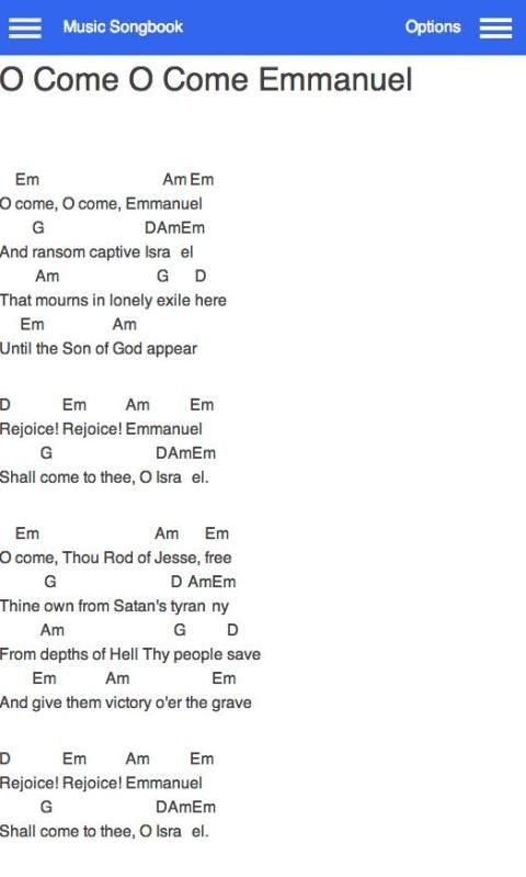 Koleksi lagu-lagu termasuk lirik lagu dan kord gitar. Bluegrass untuk himne lagu natal.