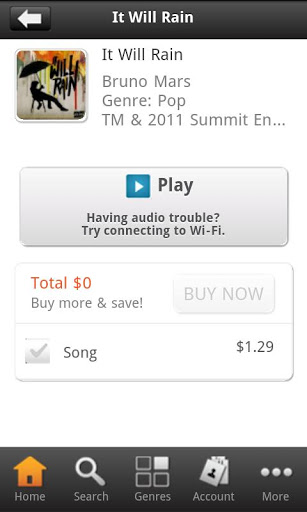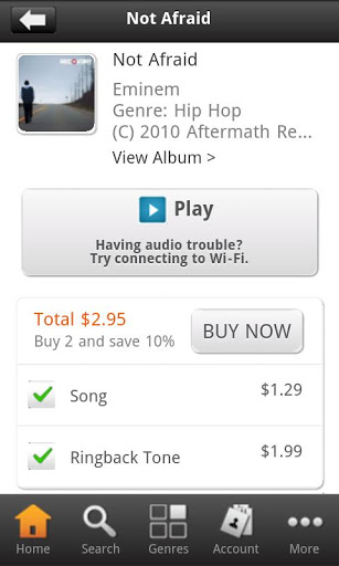 Shop for all your favorite albums, song tracks, ringtones, and ringback tones using one convenient app The Music Store from ATamp;T.Use The Music Store to download MP3s to your phone to play any time anywhere. And finding your favorite music is a simple search with millions of songs and a wide selection including: HipHop, Ramp;B and Soul, Rock, Country, Alternative, Pop, Songs Everyone Knows, Latin, Christian, Jazz amp; Blues, Classical, International and more.To access the Music Store, download the app now.Policies To purchase and download music, be sure you have an SD card installed. To enjoy downloading, streaming music previews, and browsing content, its recommended that you have a data package on your device.
