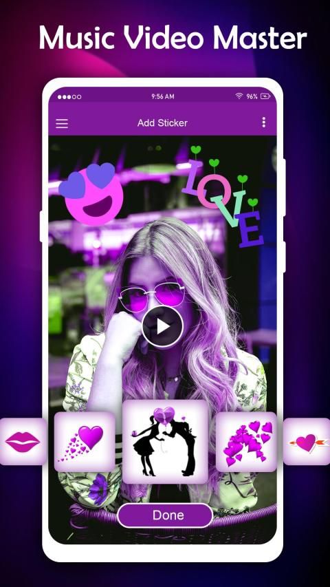 Music Video Master: Aplikasi MV Music Music Master dengan Anda juga dapat menerapkan lagu keinginan Anda dari galeri kartu SD Anda. sekarang tidak lagi membosankan berbagi status video. dengan bantuan aplikasi ini Anda dapat membuat status video animasi yang luar biasa tanpa menerapkan efek video apa pun.