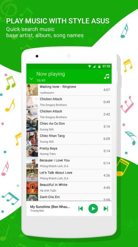 ♪ Mode & Berguna Music Player App: pemain Zenfone memiliki sederhana namun indah desain UI, Fashion desain untuk menampilkan stasiun musik listing seperti gaya asus ZenUI.