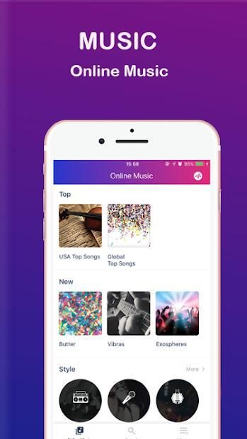 * Anda dapat mencari artis favorit Anda, mendengarkan album paling populer, memainkan genre musik favorit Anda, seperti jazz, pop hip, rap, rock, R & B, elektronik, negara, klasik dan sebagainya.