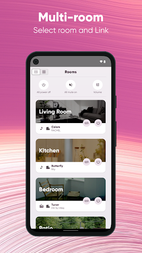 -lansen ke musik yang sama atau berbeda di setiap kamar